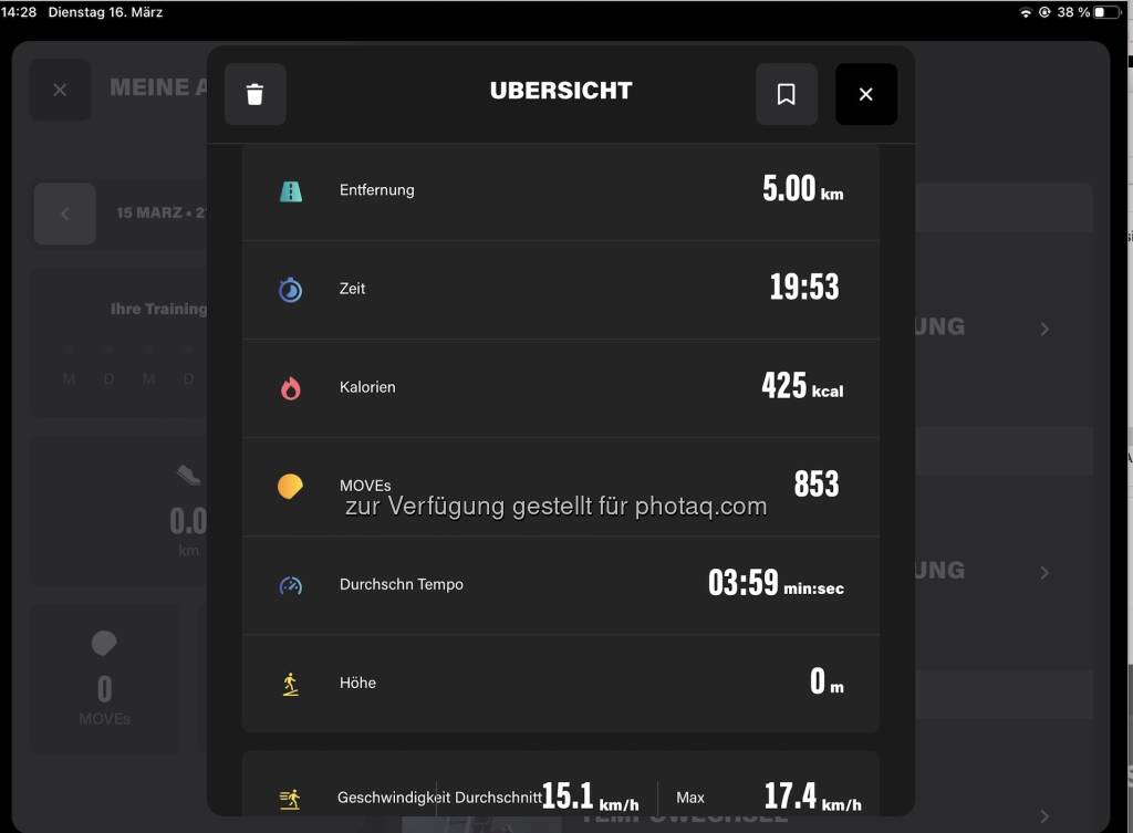 Ich probiere, jedes Monat je eine schnelle Einheit über 10k, 7,5k und 5k auf dem Laufband zu machen. Wie schon öfters geraunzt: Das Laufband musste aus Lärmgründen übersiedelt werden und ist für mich jetzt nicht mehr so gut erreichbar, steht im grossen Büro. Am Dienstag stand ein für mich schneller 5er auf dem Programm, ich absolvierte ihn in 19:53.