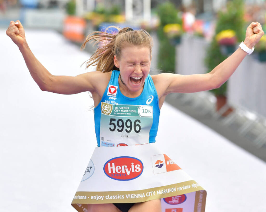 Sehr zufrieden war sie mit der ersten Streckenhälfte, die sie mit bestem Laufgefühl in einer Zeit von etwa 32:15 Minuten absolviert hat. „Nach fünf Kilometer habe ich mir nur gedacht: Das muss ich jetzt irgendwie ins Ziel bringen“; sagte sie. Für die selektivere zweite Hälfte sprach sie ihrem Tempomacher einen großen Dank für die Unterstützung aus. Hinter der Siegerin liefen Charleen Michaelis aus Deutschland (LC Villach) und Susanne Esser (runningGraz) ins Ziel und begleiteten die neue nationale Rekordhalterin auf das Siegerpodest. Die beiden absolvierten die zehn Kilometer lange Strecke, die heuer erstmals vom Start bei der Marx-Halle über einen Abstecher auf die Prater Hauptallee auf den Ring und dort bis zur Ziellinie auf Höhe des Burgtheaters führte, in 38:57 bzw. 42:21 Minuten.