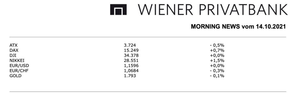 Weniger gut lief es gestern für den heimischen Markt, der ATX musste nach einem frühen Anstieg unmittelbar darauf wieder nachgeben, nach einem wechselvollen Verlauf über den Rest des Tages endete das österreichische Börsenbarometer mit einem Rückgang von 0,4%. Auf die Stimmung der Anleger drückten weiterhin die Ängste vor einer Inflation und damit verbunden vor einer Straffung der Geldpolitik der Notenbanken, Auslöser dafür waren die deutschen Verbraucherpreise, die im September um 4,1 Prozent gestiegen waren und damit erstmals seit 28 Jahren die Vier-Prozent-Marke überschritten hatten. Der Flughafen Wien konnte nach Meldung der Passagierzahlen um 2,0% zulegen, die Anzahl der Fluggäste war im September mit 2,0 Millionen Reisenden zwar doppelt so hoch wie im Vorjahresmonat, lag aber immer noch 47 Prozent unter dem Vorkrisenniveau von 2019. Davon profitieren konnte auch Do & Co, mit einem Plus von 2,3% setzte das Cateringunternehmen den Erfolgslauf, der mittlerweile seit der zweiten Septemberhälfte anhält, fort. Neuigkeiten gab es auch bei Zumtobel, der Leuchtenhersteller geht für die vier Geschäftsjahre von 2021/22 bis 2024/25 von einem durchschnittlichen jährlichen Umsatzwachstum von 4 bis 5 Prozent aus, für das Geschäftsjahr 2024/25 wird mit einer Ebit-Marge in der Größenordnung von 6 bis 8 Prozent geplant, die Aktie musste gestern dennoch mit einem leichten Minus von 0,1% aus dem Handel gehen. Unter Abgabedruck gerieten auch in Wien die Banken auf Grund der europaweiten Schwäche des Sektors, die Bawag musste um 2,6% nachgeben, die Erste Group verzeichnete ein Minus von 2,0% und für Raiffeisen International ging es um 0,5% nach unten. Hier schlug der Vorstand nach Auslaufen der Dividendenstopp-Empfehlung der EZB eine zusätzliche Dividende von 75 Cent pro Aktie für das Geschäftsjahr 2020 vor. Ganz im Gegensatz dazu konnte die Addiko Bank gestern um stolze 5,2% nach oben springen und war damit Gewinner des Tages. Semperit konnte sich eindrucksvoll von den zuletzt erlittenen Rückgängen erholen, der Gummikonzern konnte stolze 5,0% fester schliessen. Auch Lenzing war gesucht, der Faserhersteller schloss 2,2% höher, und Porr präsentierte sich erholt und konnte 2,1% zulegen.