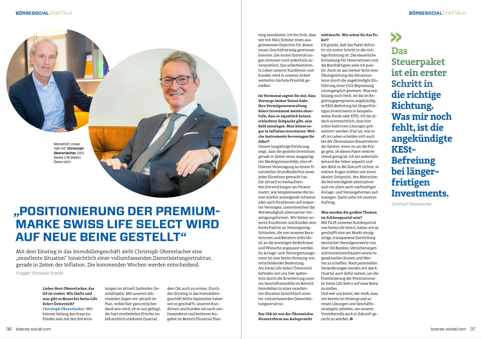 Lieber Herr Obererlacher, das Q3 ist vorbei. Wie läufts und was gibt es Neues bei Swiss Life Select Österreich?