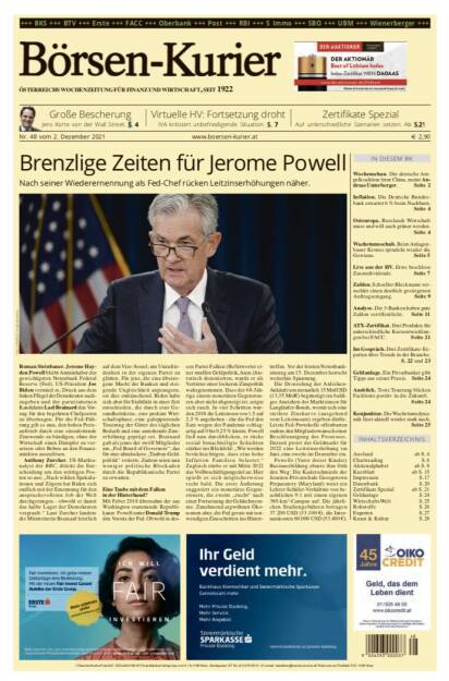 Und wieder ein Blick in den Börsen-Kurier Nr. 48, 2.12.2021, www.boersen-kurier.at