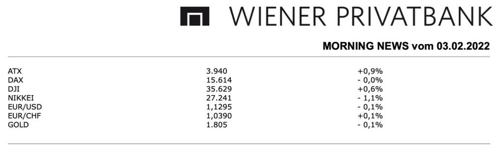 Aus den Morning News der Wiener Privatbank: Weitere Zugewinne gab es gestern für die heimische Börse, der ATX konnte den Handel mit einem Zuwachs von 0,9% beenden. Beherrschendes Thema war gestern die Inflation in der Eurozone, die mit einem Anstieg von 5,1% deutlich kräftiger ausfiel als erwartet, zwar war nach dem unerwartet starken Wert in Deutschland bereits ein etwas höherer Wert erwartet worden, aber nicht in diesem Ausmaß. Auch in Österreich stieg die Inflation laut einer Schnellschätzung der Statistik Austria um 5,1%, was den höchsten Wert seit November 1984 bedeutet, ausschlaggebend dafür waren starke Anstiege bei Strom, Gas und Treibstoff.