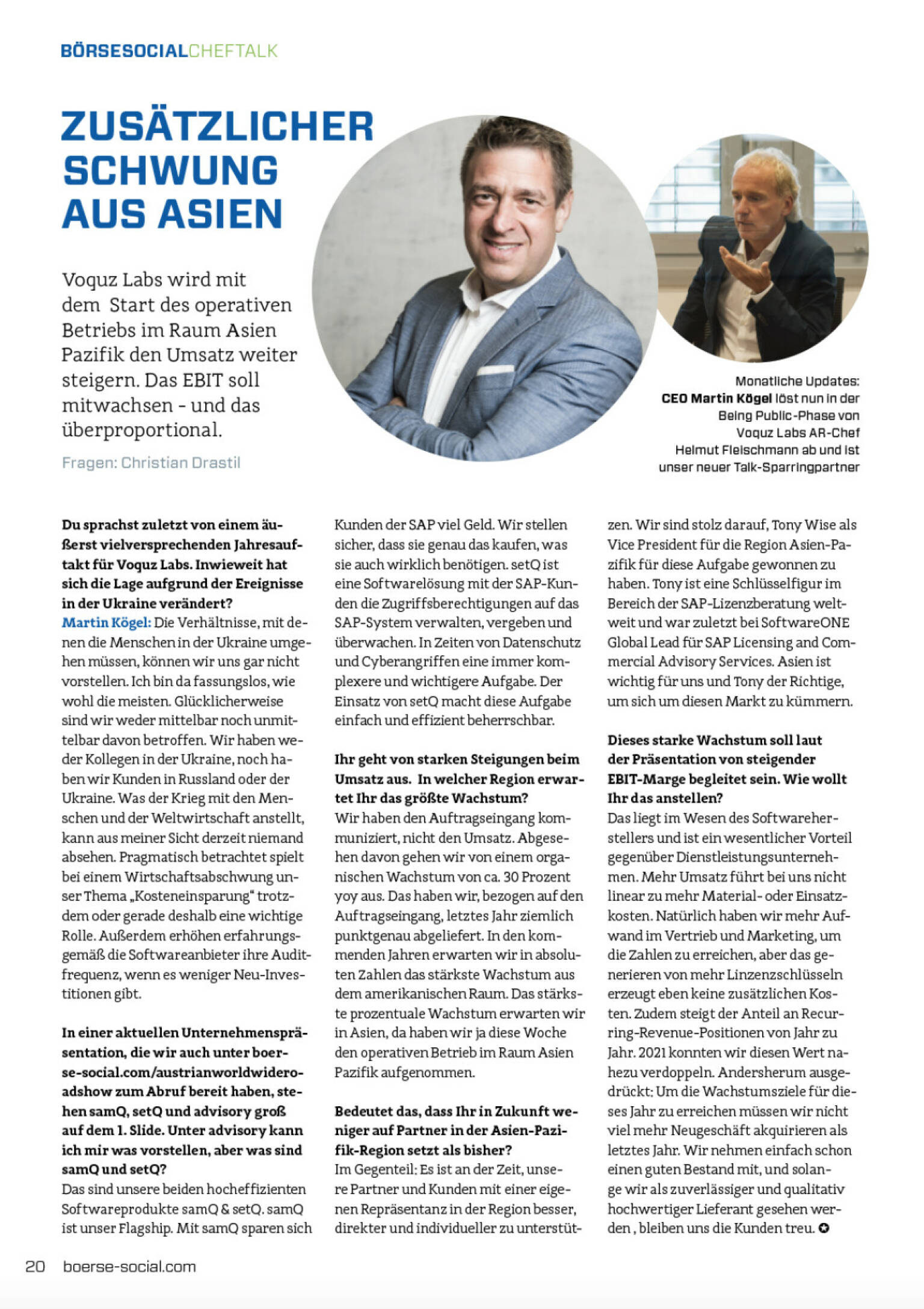 4079 ZeichenVoquz Labs wird mit dem Start des operativen Betriebs im Raum Asien Pazifik den Umsatz weiter steigern. Das EBIT soll mitwachsen - und das überproportional.