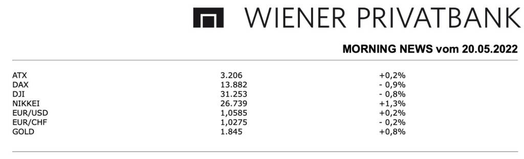 Aus den Morning-News der Wiener Privatbank: Die Wiener Börse konnte sich dem europäischen Trend widersetzen und hat den Handel am Donnerstag mit leichten Kursgewinnen beendet, der ATX ging mit einem leichten Plus von 0,2% aus dem Handel. Über weite Strecken des Handelstages hatte sich auch der Wiener Markt dem schwachen Sentiment angeschlossen, schaffte aber am Nachmittag getrieben von steigenden Kursen bei einigen schwer gewichteten Bankwerten einen Ausbruch ins positive Terrain. Die Bawag konnte um 0,9% zulegen, für die im Index am stärksten gewichtete Erste Group gab es einen Anstieg von 0,4%, lediglich die Raiffeisen Bank International konnte hier nicht mithalten und musste 2,0% nachgeben. Zulegen konnten gestern wieder die Versorger, der Verbund verzeichnete einen Anstieg von 2,6%, für EVN ging es um 1,1% nach oben. Ansonsten standen Unternehmensergebnisse im Blickpunkt des Interesses, Schoeller-Bleckmann legte für das erste Quartal Zahlen vor, die vom Markt euphorisch aufgenommen wurden, die Aktie konnte um 8,0% zulegen. Der Ölfeldausrüster hat bei allen wesentlichen Kennzahlen kräftig zulegen können und übertraf die ohnehin schon teils sehr optimistischen Erwartungen.