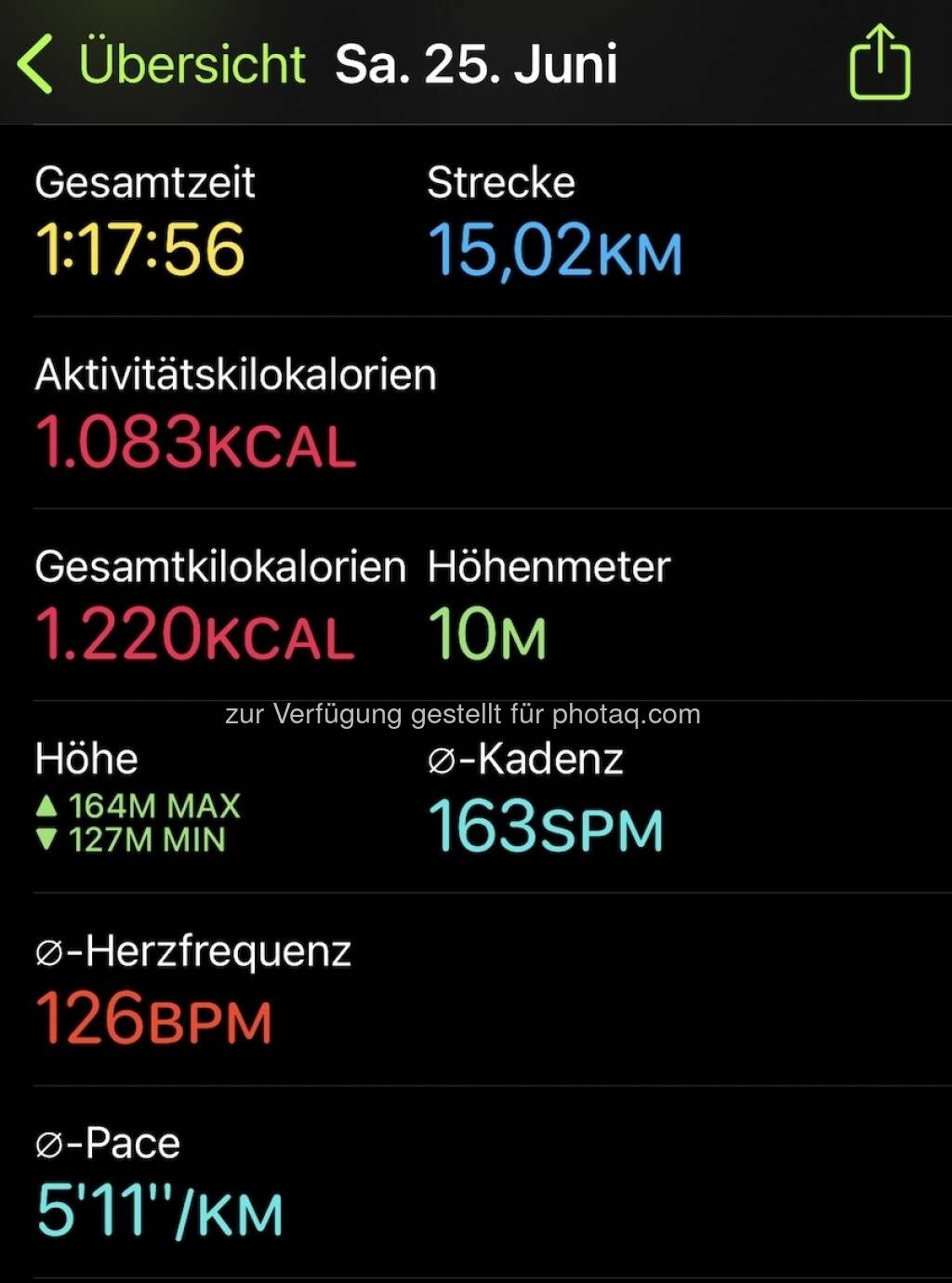 Runkit rechnet: Christian ist im Juni bisher 84,650 km gelaufen, im Schnitt täglich 3,386 km, ein Minus von 36,33 Prozent gegenüber dem Mai, als Christian 5,318 km Tagesschnitt hatte. Christians Top-Monat bisher: November 2020 mit 10,999 km täglich.