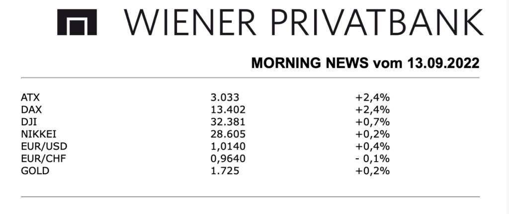 Aus den Morning News der Wiener Privatbank: Die heimische Börse konnte mit klaren Aufschlägen in die neue Woche starten und den Elan der Vorwoche mitnehmen, der ATX endete mit einem Zuwachs von 2,4% und verbuchte damit bereits den vierten Gewinntag in Folge. Schon über Nacht waren positive Impulse durch die starken Börsen in Asien gekommen, mit der positiven Eröffnung in den USA kam noch einmal zusätzlicher Schwung in den Handel. Impulsgebende Konjunkturdaten waren hingegen Mangelware, auch von der Unternehmensseite gab es so gut wie keine signifikanten Meldungen. Weiter sehr gesucht waren die großen Bankenwerte, die somit erheblich zur guten Entwicklung des Index beitrugen, für die Bawag gab es einen Anstieg von 1,3%, die Erste Group konnte sich gleich um 4,4% verbessern und für die Raiffeisen Bank International gab es einen Zuwachs von 2,2%.