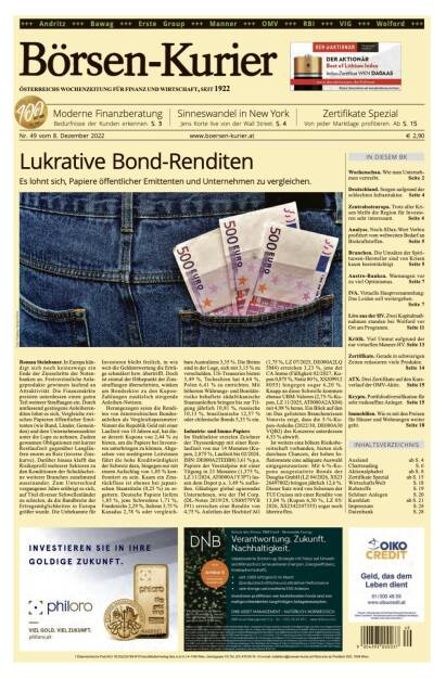 Und wieder ein Blick in den Börsen-Kurier Nr. 49 vom 8. Dezember 2022: www.boersen-kurier.at