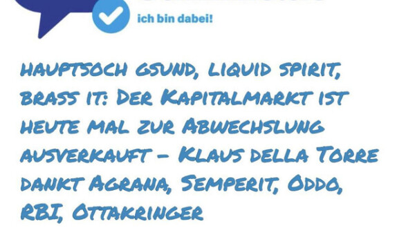 kapitalmarkt-stimme.at daily voice: Der Kapitalmarkt mal temporär ausverkauft, Klaus della Torre dankt Agrana, Semperit, Oddo, RBI, Ottakringer