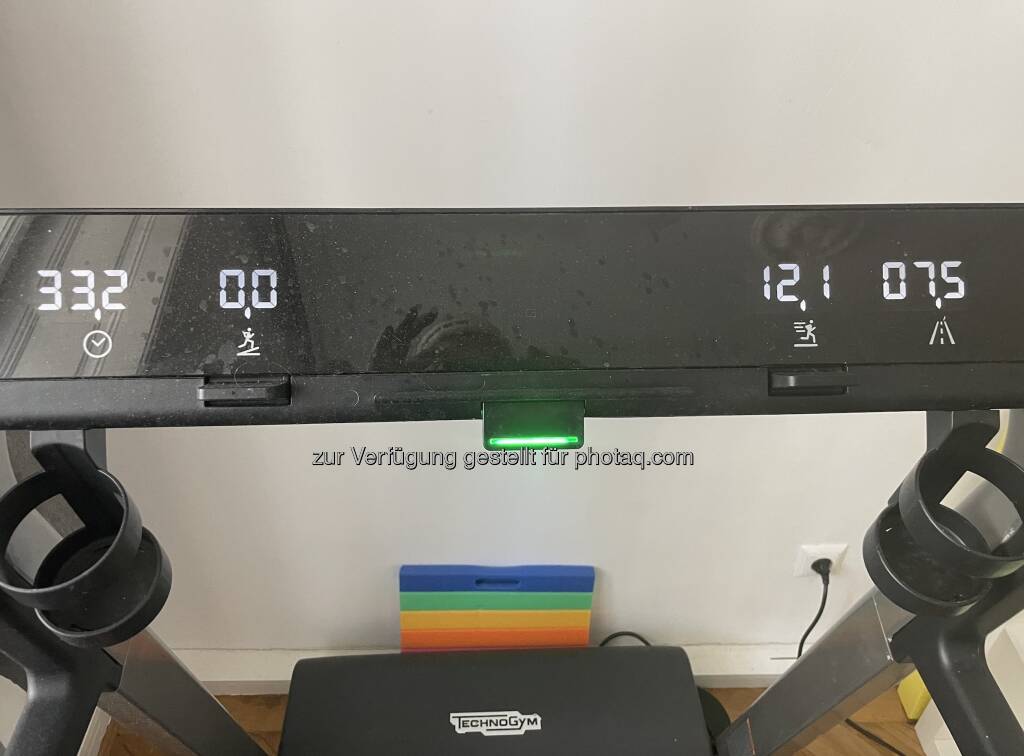 Foto des Laufbands immer gleich nach dem Überspringen der 7,5er-Marke und Abdrehen, da fährt der Speed dann schon langsam runter.