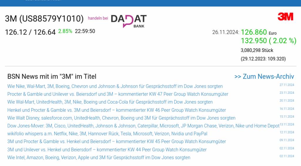 3M am 26.11. 2,02%, Volumen 68% normaler Tage