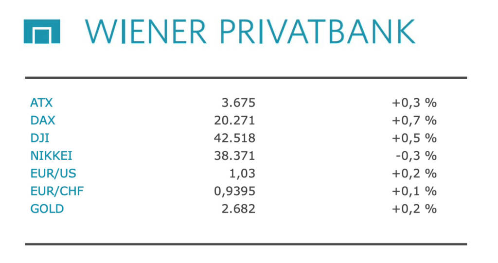Aus den Morning News der Wiener Privatbank: "Der Wiener Aktienmarkt hat den Handel am Dienstag mit moderaten Gewinnen beendet. Der ATX legte um 0,34 Prozent zu auf 3.674,73 Punkte. Der ATX Prime gewann 0,31 Prozent bei 1.832,69 Zählern. Die US-Erzeugerpreise sind im Dezember etwas langsamer gestiegen als erwartet. Die Zahlen dürfen die Inflations- und Zinssorgen in den USA etwas gedämpft haben. Ein Bericht, wonach ein Berater-Team des designierten US-Präsidenten Donald Trump über eine langsame und schrittweise Erhöhung der Zölle nachdenke, dürfte zudem die Risikobereitschaft am Markt erhöht haben. Zudem würde dies der US-Notenbank Fed einen größeren Spielraum geben, die Leitzinsen zu senken.