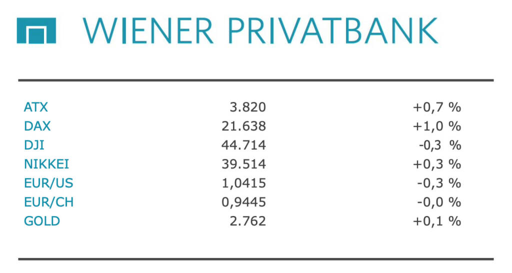 Aus den Morning News der Wiener Privatbank: "Der Wiener Aktienmarkt hat am Mittwoch mit Kursgewinnen geschlossen. Der Leitindex ATX gewann nach einem ruhigen Handel 0,65 Prozent auf 3.819,81 Punkte. Unterstützt von starken Vortagesvorgaben der Nasdaq ging es europaweit mit den Aktienkursen überwiegend nach oben. An den internationalen Aktienmärkten ist wieder Zuversicht eingekehrt, nachdem das chinesische Start-Up DeepSeek und seine KI-Modelle zuletzt für Verunsicherung gesorgt hatten. Einen positiven Impuls lieferten zudem zur Wochenmitte starke Auftragsdaten des niederländischen Chipausrüsters ASML. Die gestern Abend erwartete US-Zinsentscheidung wird gemäß Einschätzung vermutlich keine tiefen Spuren an den internationalen Finanzmärkten hinterlassen, denn große Überraschungen zeichnen sich nicht ab. Es galt bereits im Vorfeld als unwahrscheinlich, dass die Geldpolitik verändert wird.