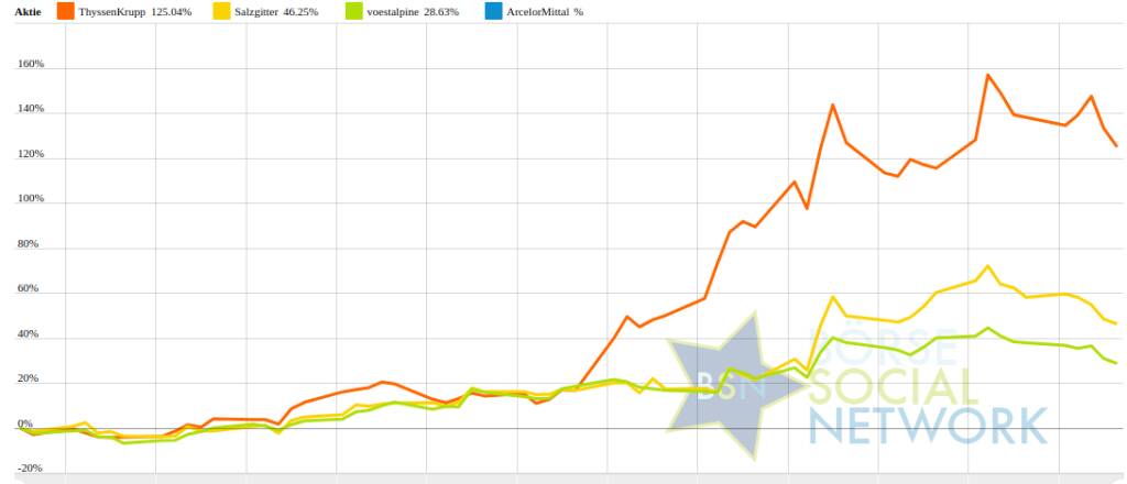 Die Durchschnittsperformance ytd der BSN-Group Stahl ist 51,53% und reiht sich damit auf Platz 1 ein: