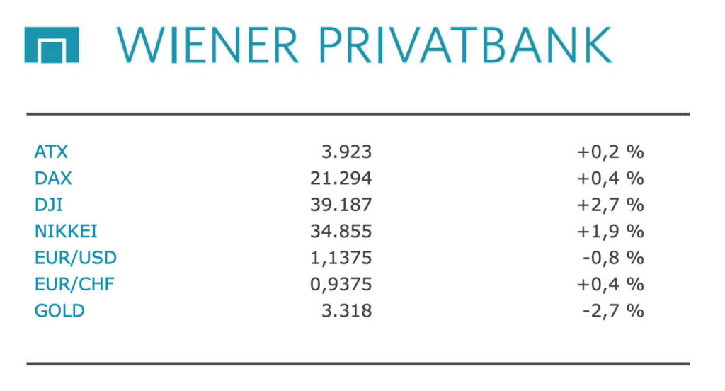 Aus den Morning News der Wiener Privatbank: "Die Wiener Börse hat gestern Dienstag nach einem schwächeren Verlauf mit Kursgewinnen geschlossen. Der Leitindex ATX zeigte sich bis kurz vor Handelsende tiefer, drehte in einem starken Finish dann aber das Vorzeichen noch um und schloss 0,17 Prozent höher auf 3.922,66 Punkte. Auch der breiter gefasste ATX Prime kletterte um 0,13 Prozent auf 1.977,32 Einheiten. Die übrigen europäischen Bösen drehten im späten Handel ebenfalls ins Plus, hier kam Rückenwind von der Wall Street, die sich nach den kräftigen Vortagesverlusten erholen konnte. Belastet hatte die Finanzmärkte schon am Ostermontag, dass die US-Regierung unter Präsident Donald Trump erwägt, den Chef der US-Notenbank Fed, Jerome Powell, zu entlassen. Trump drängte den Fed-Vorsitzenden am Montag zum wiederholten Male, die Leitzinsen zu senken und bezeichnete ihn als "Loser". Powell will die Zinsen wegen Inflationsrisiken nach Trumps Zoll-Rundumschlag vorerst aber nicht senken.