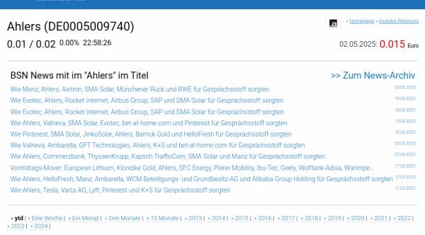 Ahlers am 2.5. -14,71%, Volumen 0% normaler Tage
