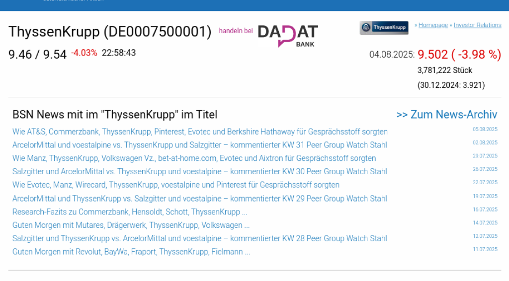 ThyssenKrupp am 4.8. -3,98%, Volumen 65% normaler Tage