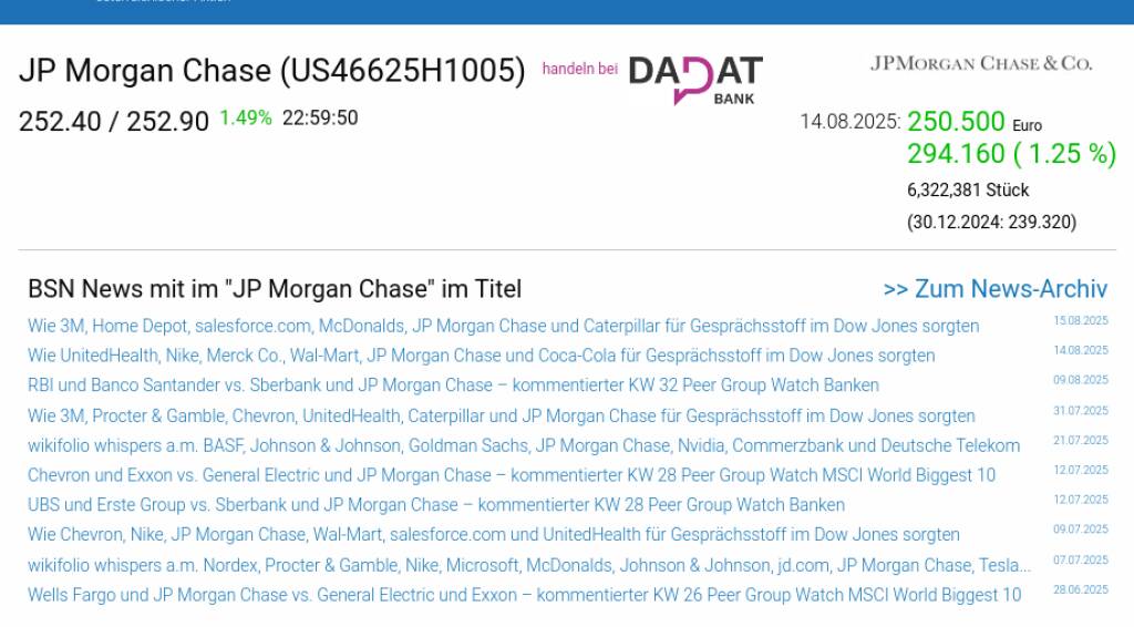 JP Morgan Chase am 14.8. 1,25%, Volumen 63% normaler Tage