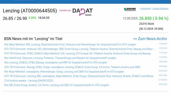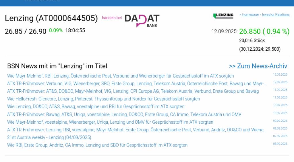 Lenzing am 12.9. 0,94%, Volumen 41% normaler Tage