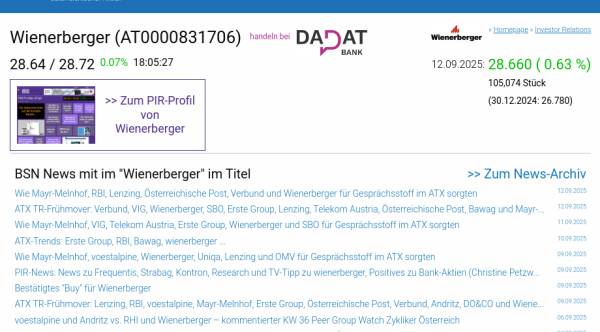 Wienerberger am 12.9. 0,63%, Volumen 47% normaler Tage