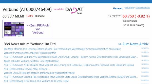 Verbund am 12.9. -0,82%, Volumen 154% normaler Tage