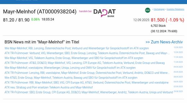 Mayr-Melnhof am 12.9. -1,09%, Volumen 71% normaler Tage