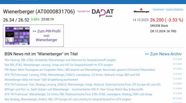 Wienerberger am 14.10. -3,53%, Volumen 160% normaler Tage