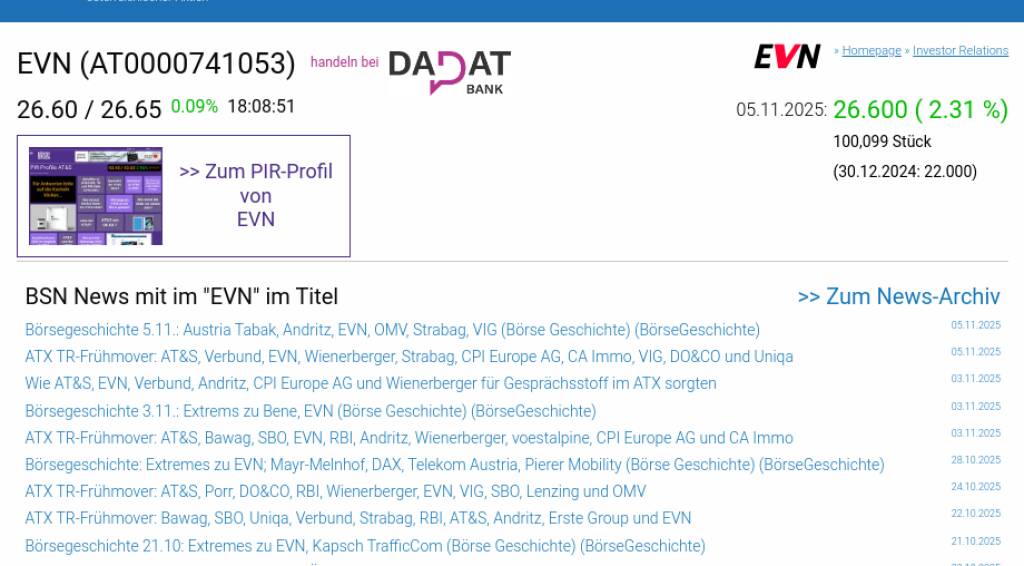 EVN am 5.11. 2,31%, Volumen 171% normaler Tage