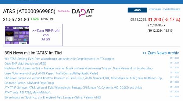 AT&S am 5.11. -5,17%, Volumen 211% normaler Tage