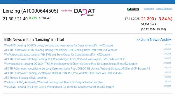 Lenzing am 17.11. -3,84%, Volumen 97% normaler Tage