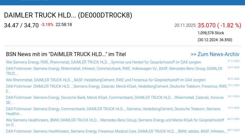 DAIMLER TRUCK HLD... am 20.11. -1,82%, Volumen 78% normaler Tage