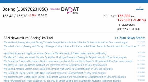 Boeing am 20.11. -3,40%, Volumen 165% normaler Tage