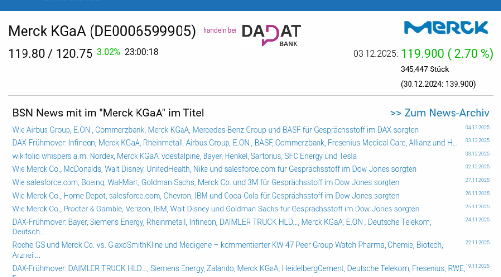 Merck KGaA am 3.12. 2,70%, Volumen 103% normaler Tage