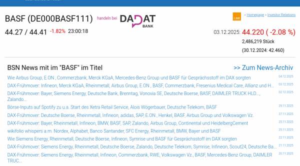 BASF am 3.12. -2,08%, Volumen 89% normaler Tage