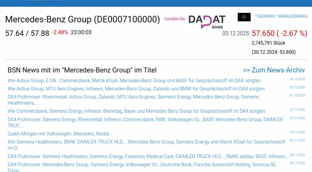 Mercedes-Benz Group am 3.12. -2,67%, Volumen 110% normaler Tage