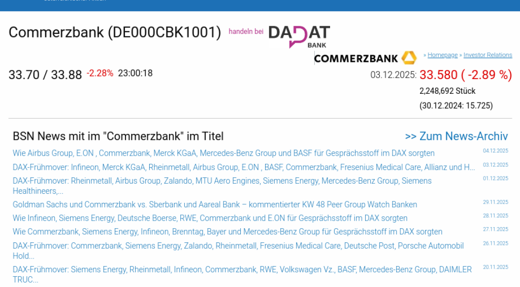 Commerzbank am 3.12. -2,89%, Volumen 45% normaler Tage