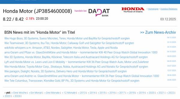 Honda Motor am 3.12. -3,48%, Volumen 0% normaler Tage