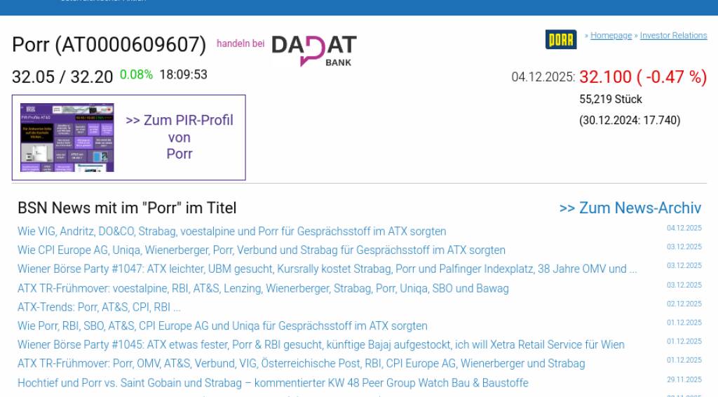 Porr am 4.12. -0,47%, Volumen 84% normaler Tage