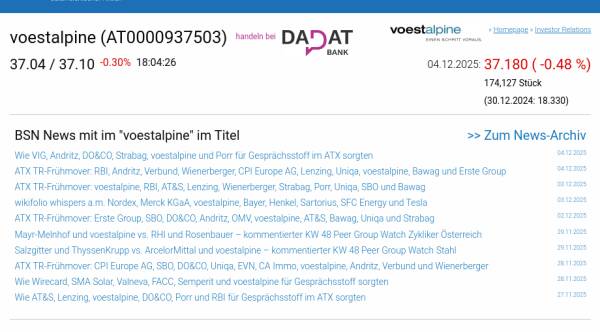 voestalpine am 4.12. -0,48%, Volumen 55% normaler Tage
