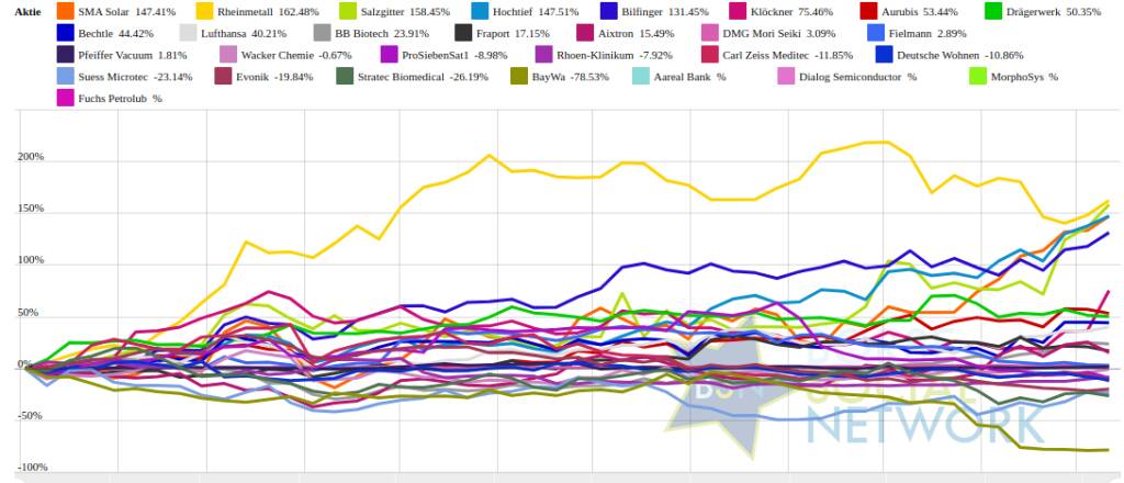 SMA Solar 171,98% (Vorjahr: -77,61 Prozent) im Plus. Dahinter
