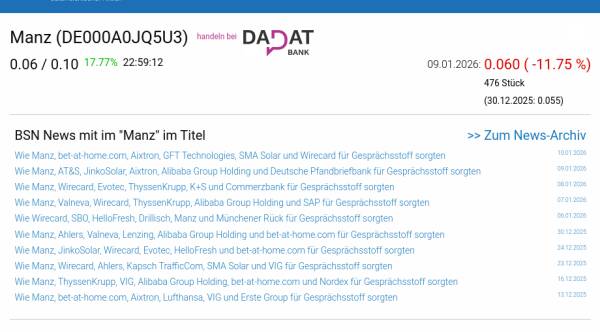 Manz am 9.1. -11,75%, Volumen 5% normaler Tage