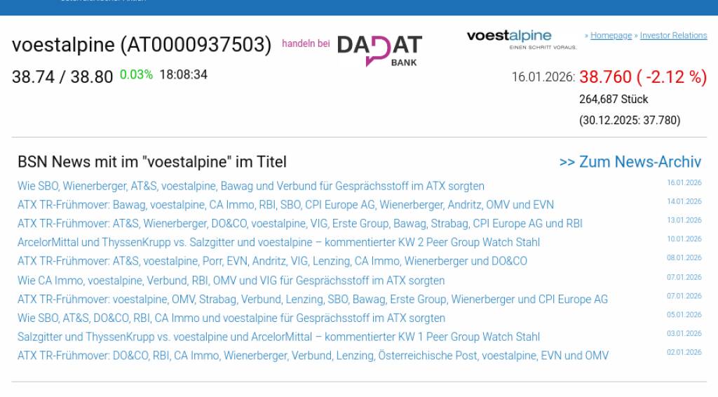 voestalpine am 16.1. -2,12%, Volumen 81% normaler Tage