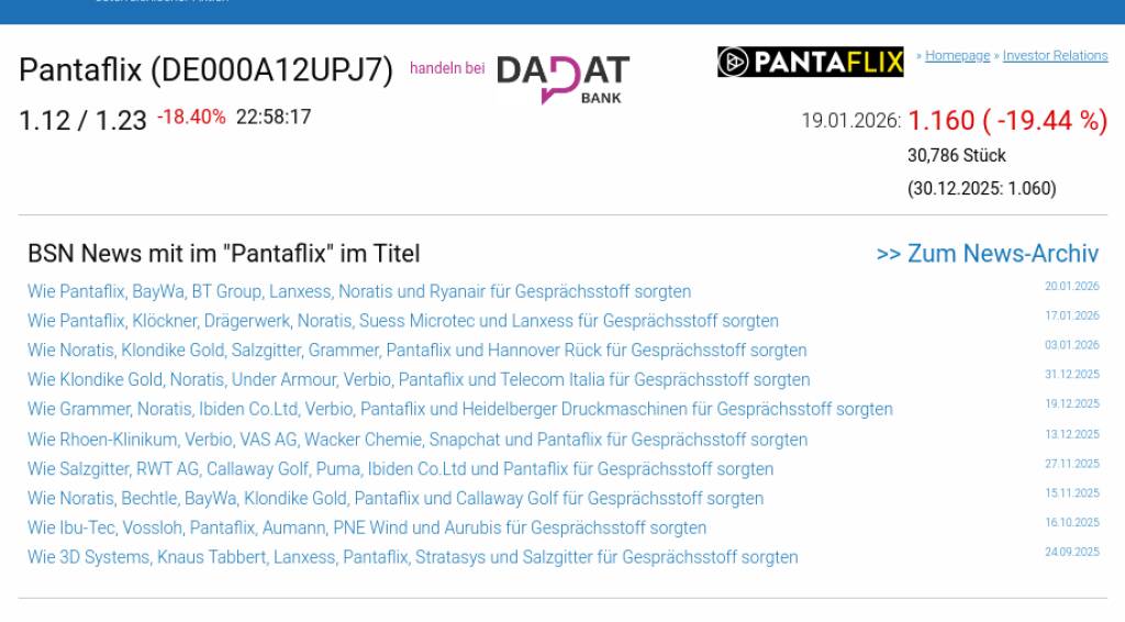 Pantaflix am 19.1. -19,44%, Volumen 519% normaler Tage
