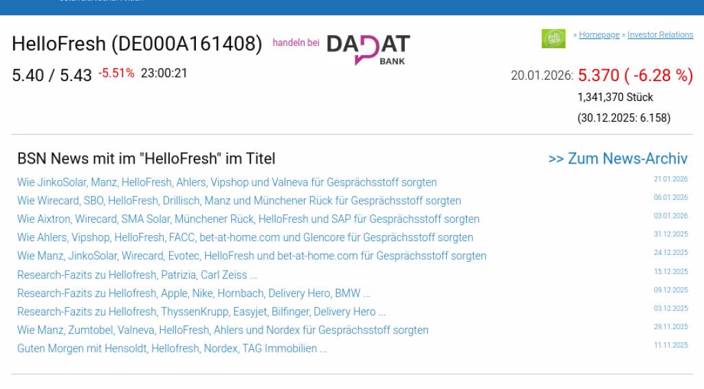 HelloFresh am 20.1. -6,28%, Volumen 125% normaler Tage