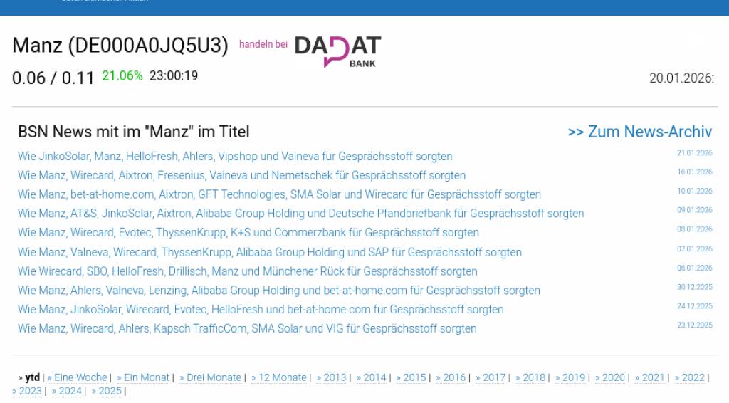 Manz am 20.1. -12,15%, Volumen 0% normaler Tage