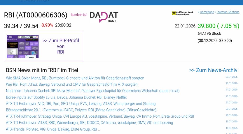 RBI am 22.1. 7,05%, Volumen 178% normaler Tage