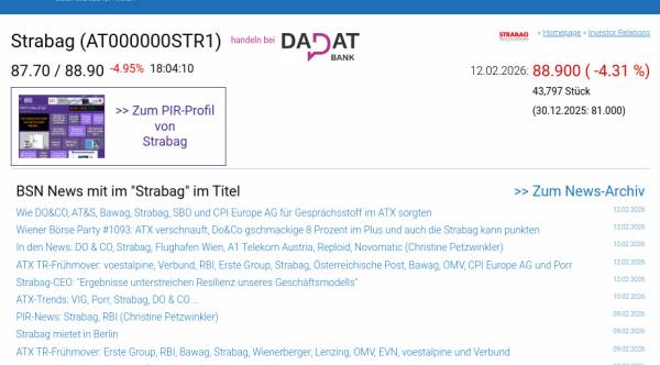 Strabag am 12.2. -4,31%, Volumen 112% normaler Tage