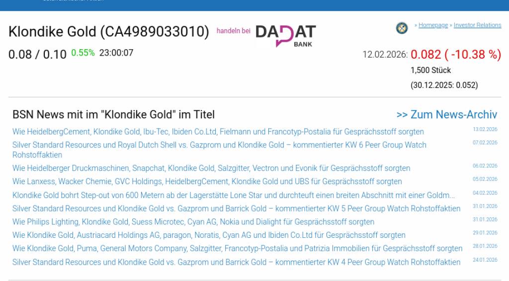 Klondike Gold am 12.2. -10,38%, Volumen 1000% normaler Tage