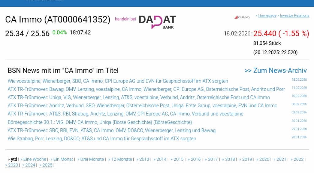 CA Immo am 18.2. -1,55%, Volumen 112% normaler Tage