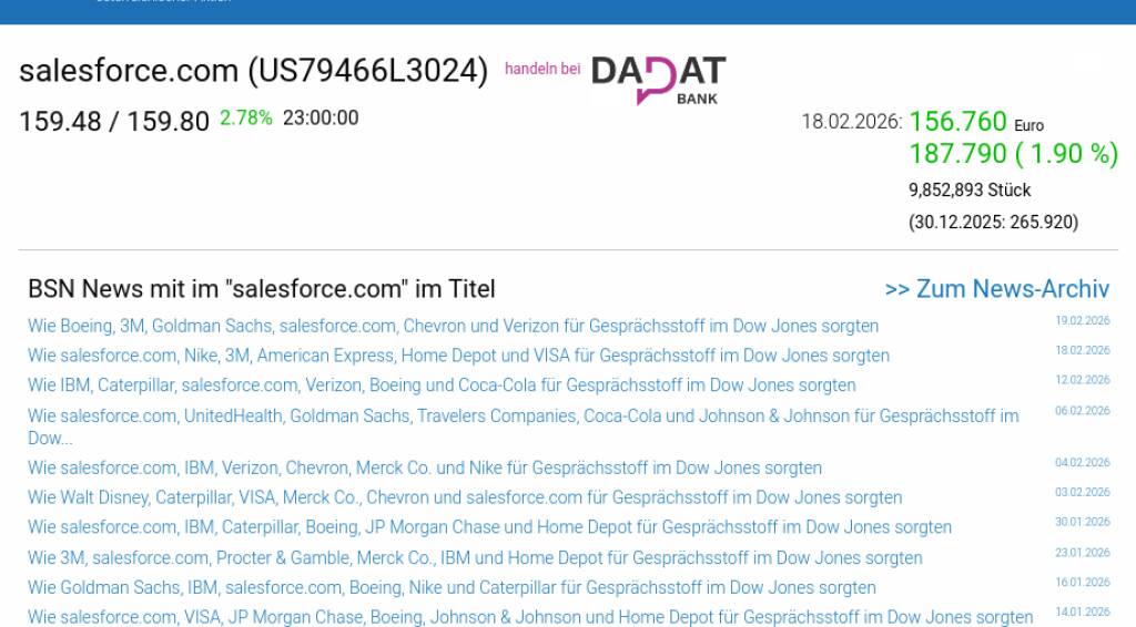 salesforce.com am 18.2. 1,90%, Volumen 85% normaler Tage