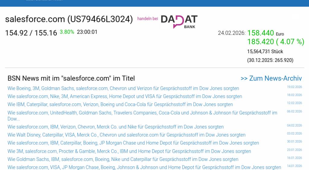salesforce.com am 24.2. 4,07%, Volumen 133% normaler Tage